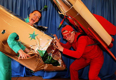 Sie sehen, wie viel Spaß es machen kann, sich gegenseitig zu neren una gemeinsam Neues zu entdecken. Und da die Erdenkinder die beiden am Ende des Stücks auf die Idee bringen, den Sternenstahlschrauber gegen die feuerfeste Flammenfolie zu tauschen, können beide auch ihre Raketen wieder reparieren und abheben. Dies ist ein interaktives Theaterstück, das zeigt, wie sinnvoll es sein kann, die eigenen Vorurteile zu hinterfragen und miteinander zu arbeiten statt gegeneinander.